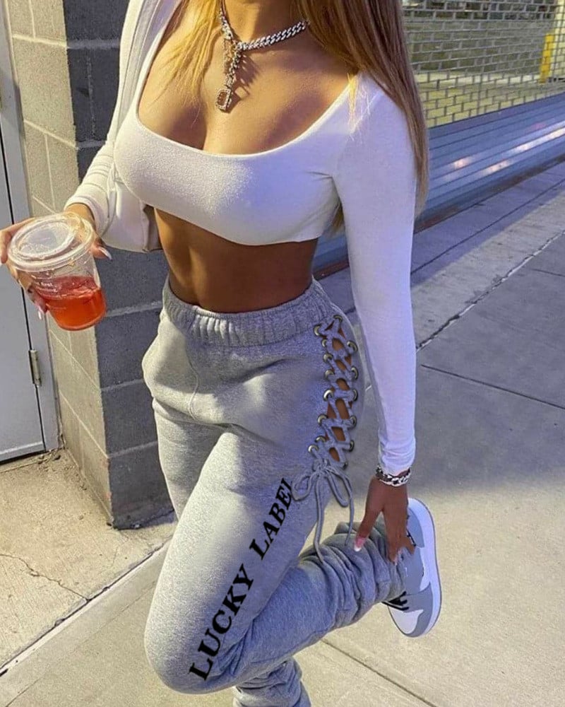 Lace-Up Print Pile Trousers for European and American Style